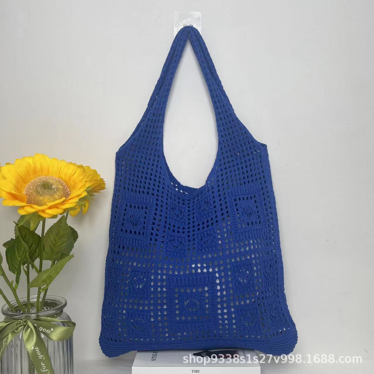 ニットバッグレトロメッシュ透かし彫りシンプル編みカバンレディースショルダーバッグbags毛糸ハンドバッグショッピングバッグ