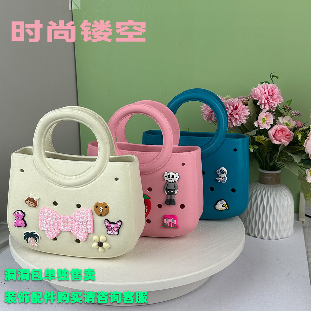EVA 無地 DIY 穴あきバッグ防水収納袋野菜バスケットビーチバッグファッション中空旅行ハンドバッグ