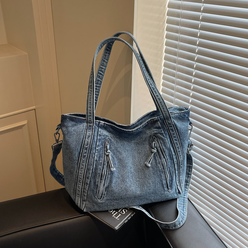 大容量デニムトートバッグ女性のための 2025 夏カジュアル多用途クラス通勤ショルダーメッセンジャーバッグ卸売