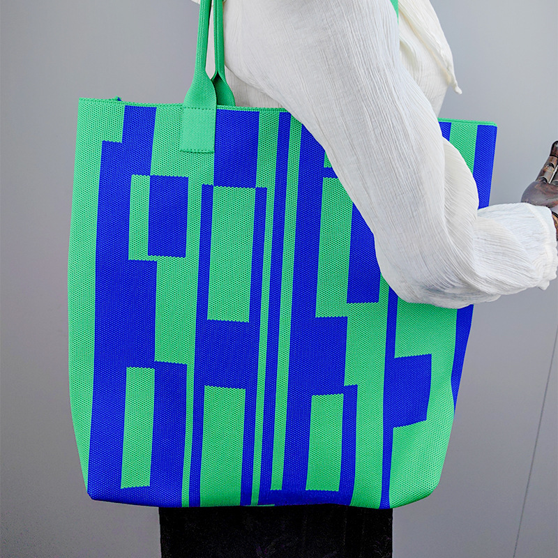 アマゾンドーパミン衝突色ニットバッグ大容量シングルショルダーバッグ2024新作オリジナルデザイン高級感小衆