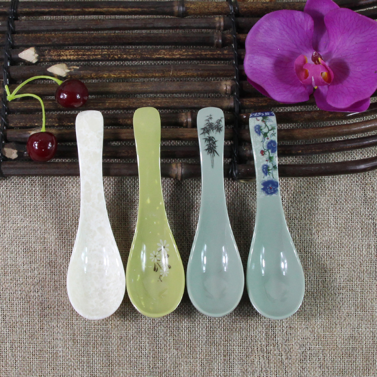 卸売 A5 メラミン模造磁器プラスチック 7006 スープとお粥スプーン青と白の磁器大理石風景インクグリーン小さなスプーン 10 個