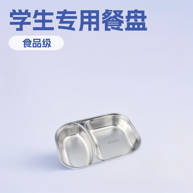 304食品グレードステンレス製二層厚型深皿 学生・子供・児童食堂用正方形皿