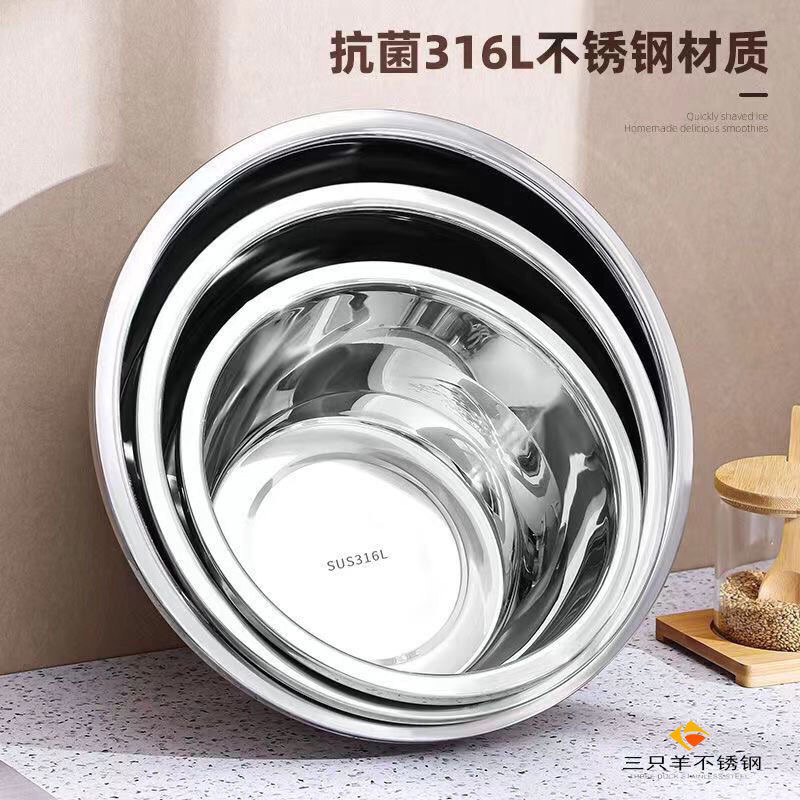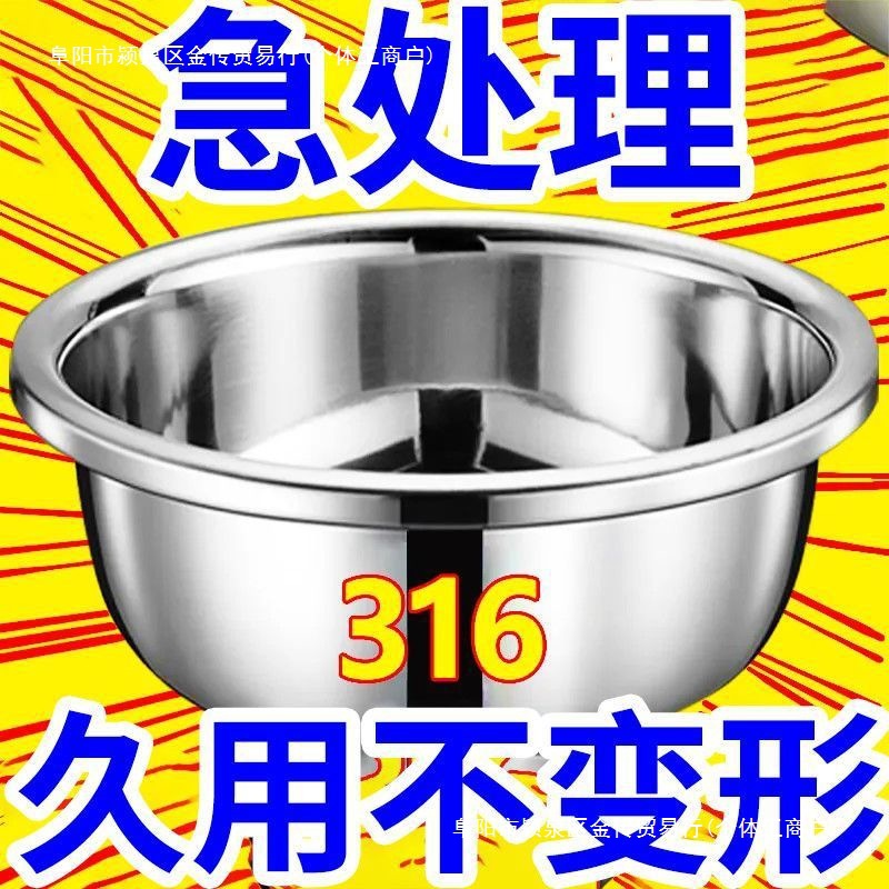 極厚洗面器 316 ステンレス鋼洗面器家庭用深め生麺混練ノンスティック洗面器厚み
