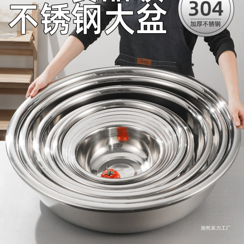 特厚ステンレス盆円形ステンレス調味料盆家庭用深盆台所洗面器卵洗浄野菜水たまり盆