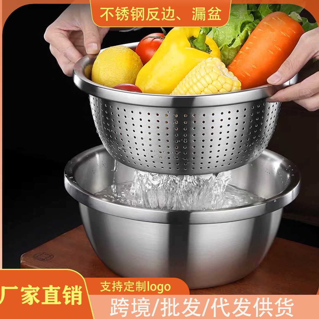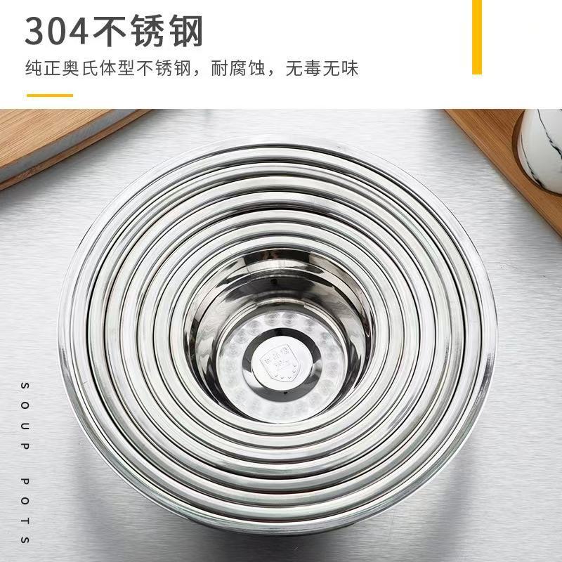 304 ステンレス鋼の洗面器セット、丸い味のボウル、家庭用調理ボウル、スープボウル、フルーツボウル、米洗いボウル、麺洗いボウル