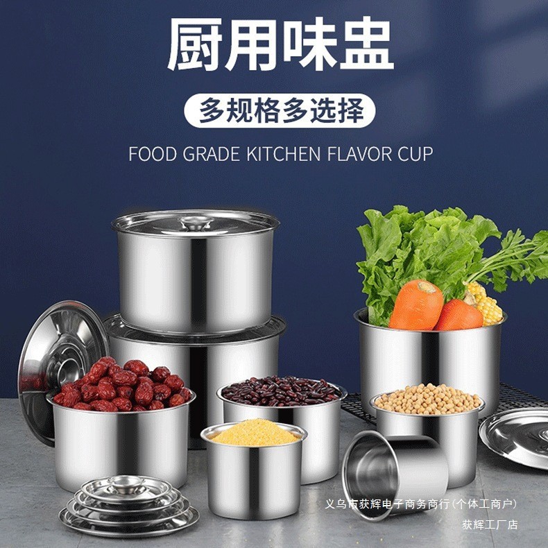 ステンレス盆304家庭用の厚い蓋付きキッチンオムライスの商用サイズと洗面器調味料カップ油国