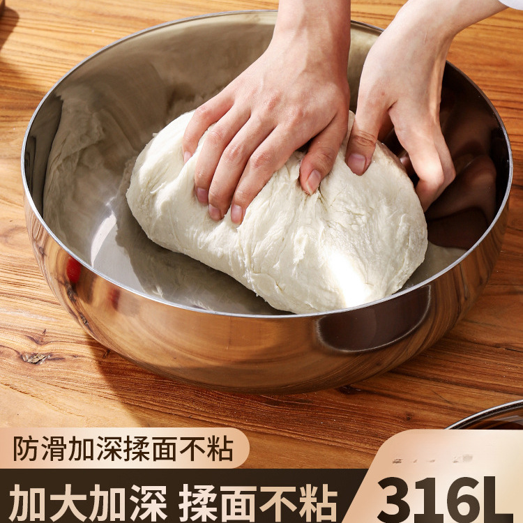 深めの野菜洗いと洗面器、新しい生卵泡立て洗面器、316ステンレス鋼生地キッチン洗面器、家庭用混練スープ洗面器