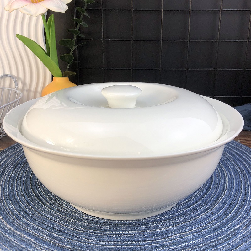 家庭用大食盆個性純白大サイズスープ鍋蓋付きスープ碗宮廷鍋陶磁器品鍋は印字できます。
