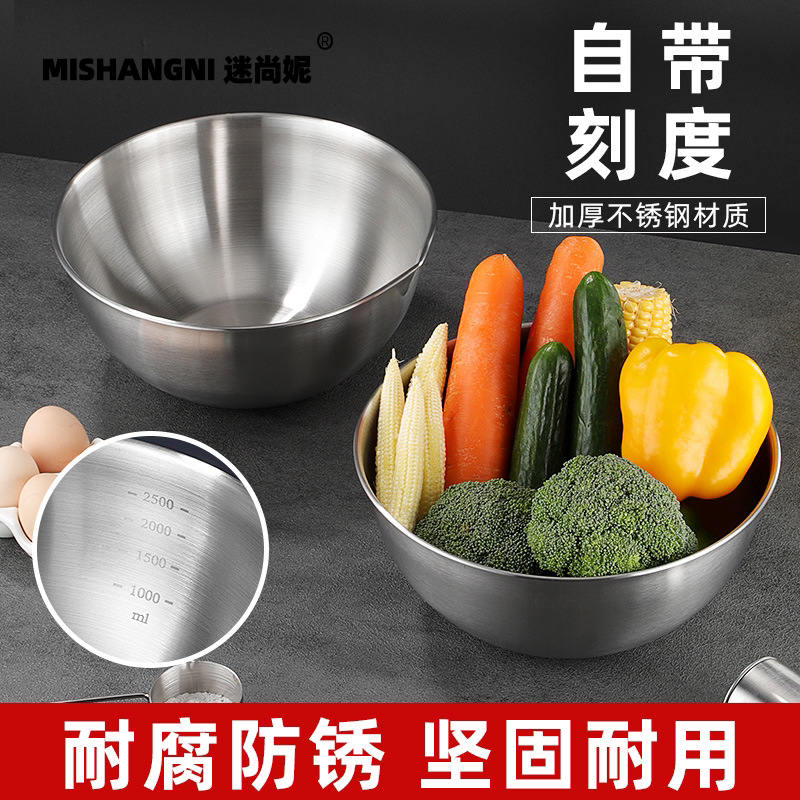 304 ステンレス鋼スープボウル多機能キッチン野菜ボウル商業肥厚食堂鉄ボウル家庭用ステンレス鋼ボウル卸売