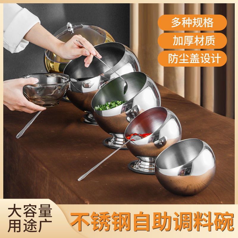 商用火鍋店ソース調味料斜口調味料碗ステンレス球形サラダ碗セルフサービス食器麻辣热安零容