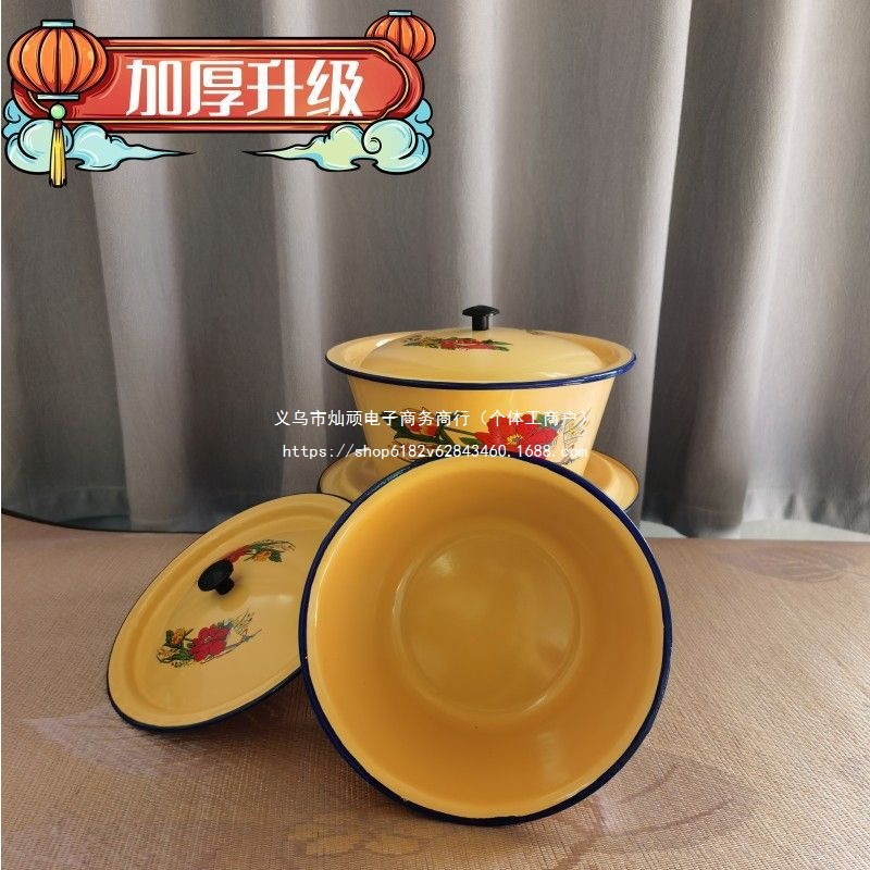 蓋付き昔ながらの琺瑯ポット、ノスタルジックな蓋付きポット、ミキシングボウル、ミキシングボウル、ラードポット、鍋レストランのレトロな調味料ポット