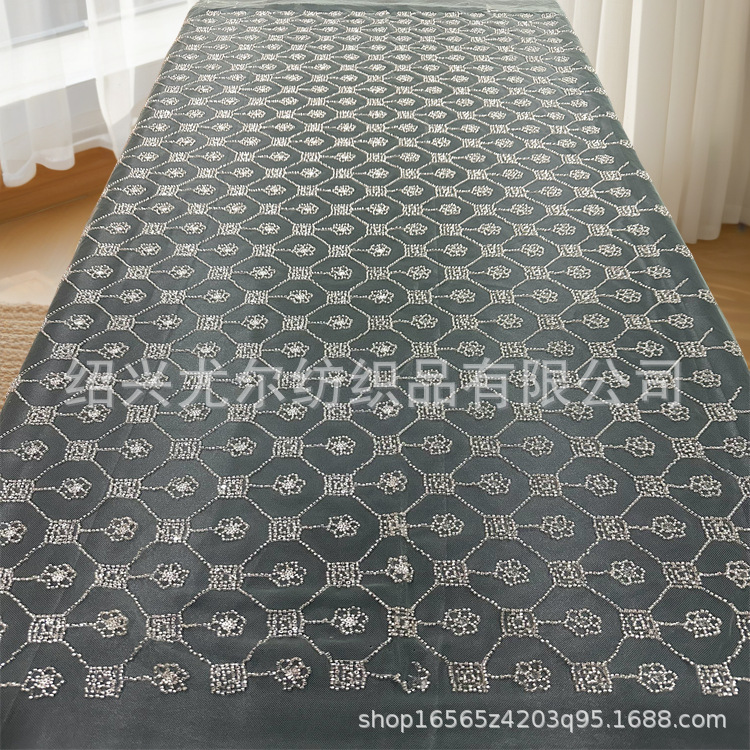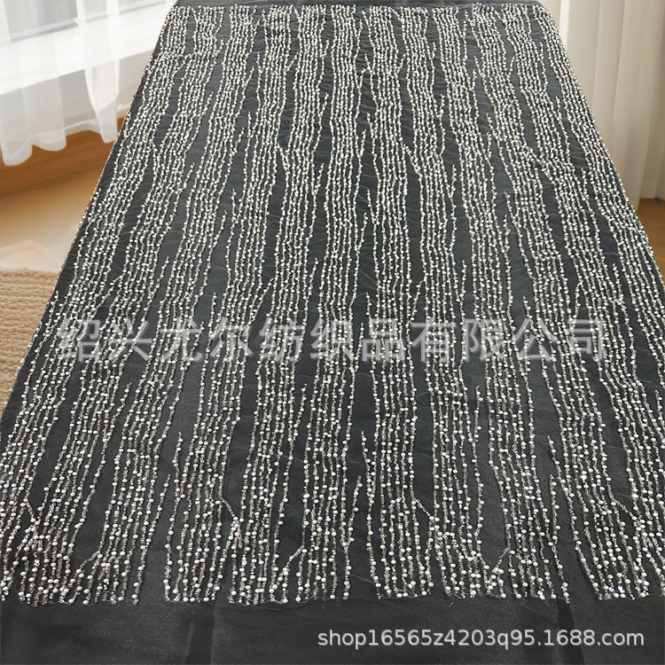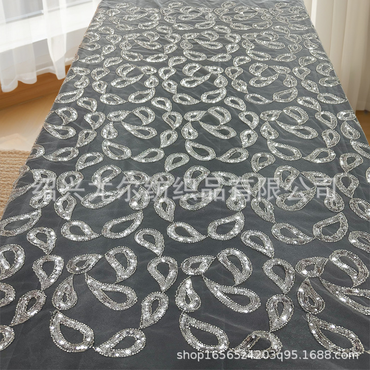 ポリエステル韓網白銀小米珠水晶スパンコールシンプルな腰果花珠管刺繍ファッション生地