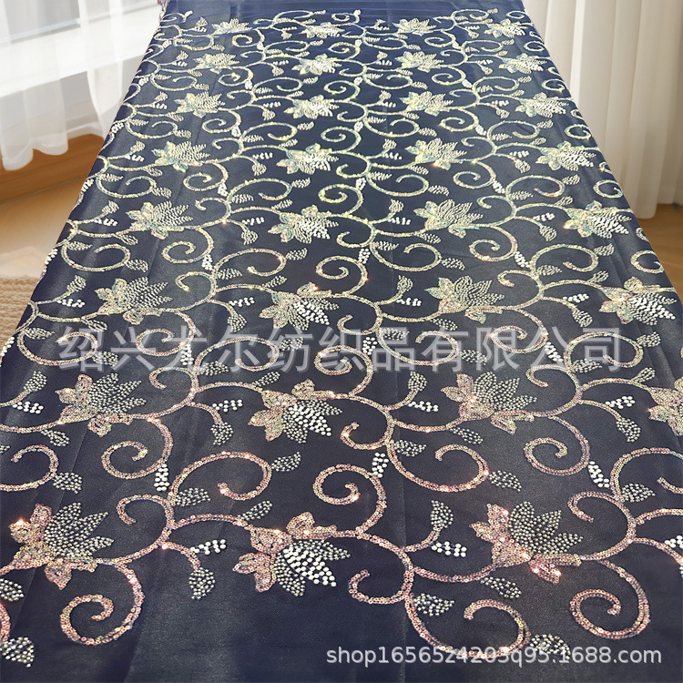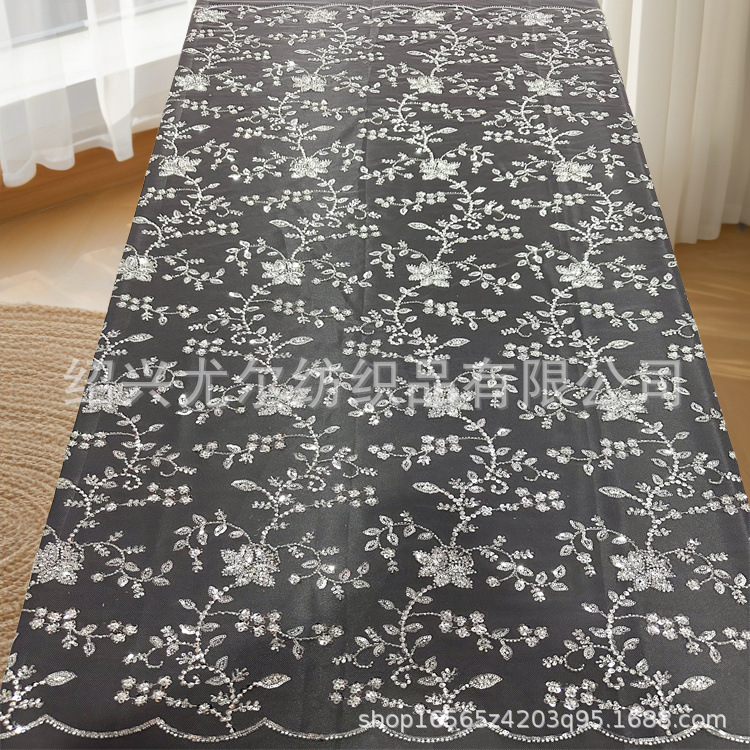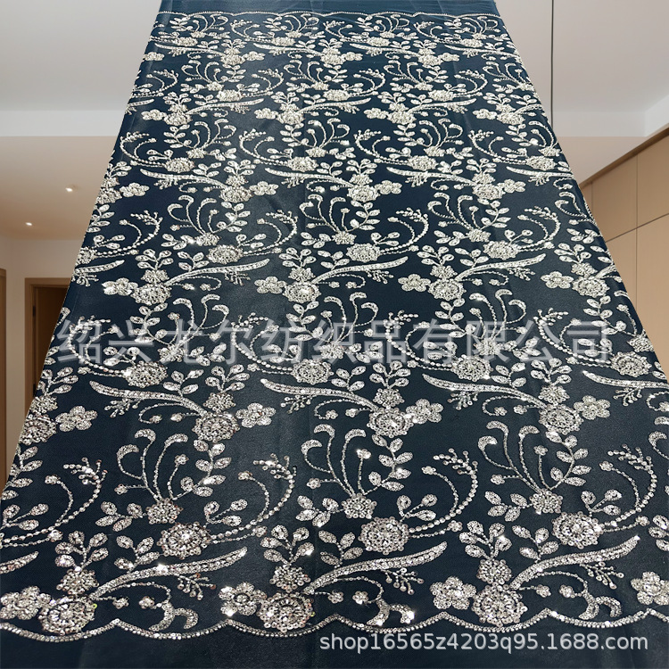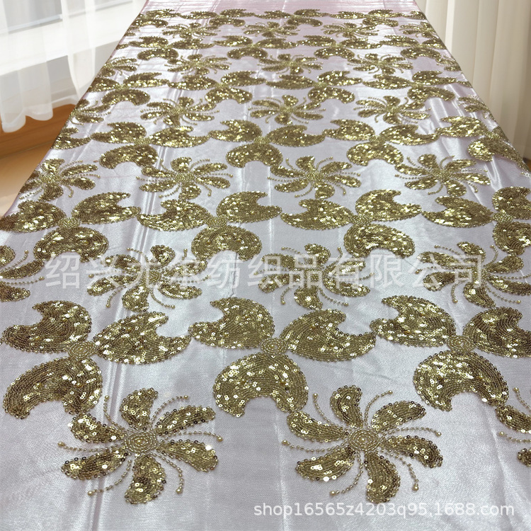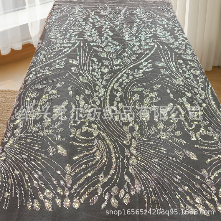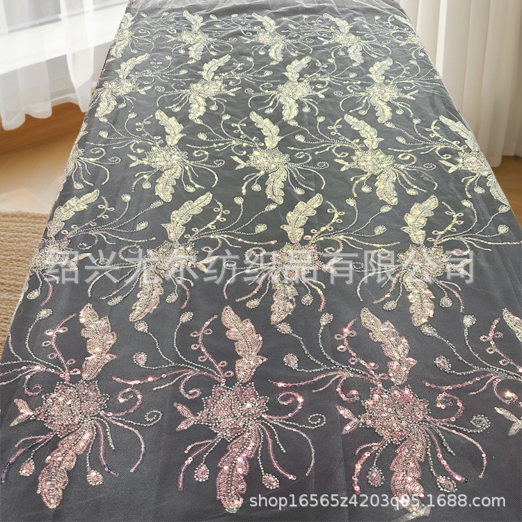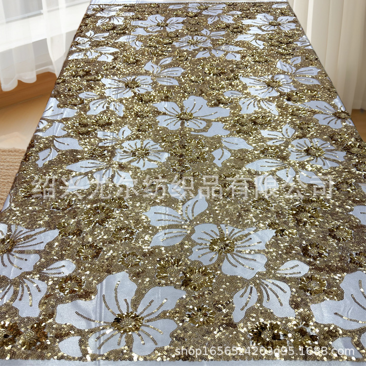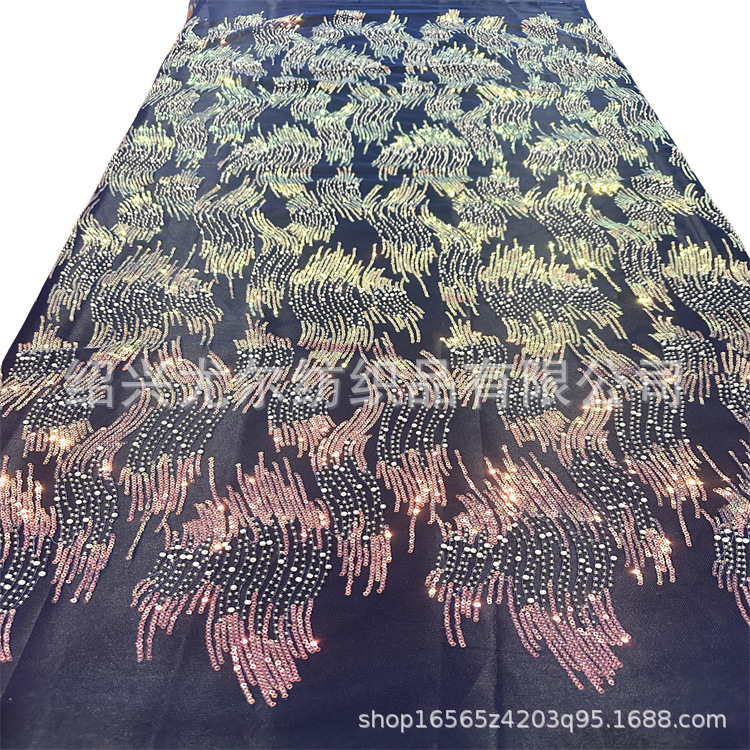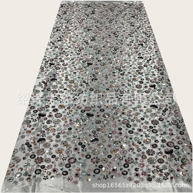 2025新型開発大花位ファッションドレス金光珠片スパンコールビーズ刺繍生地量量大特恵