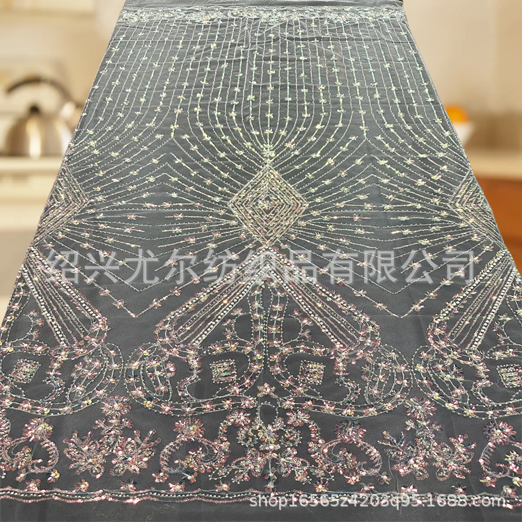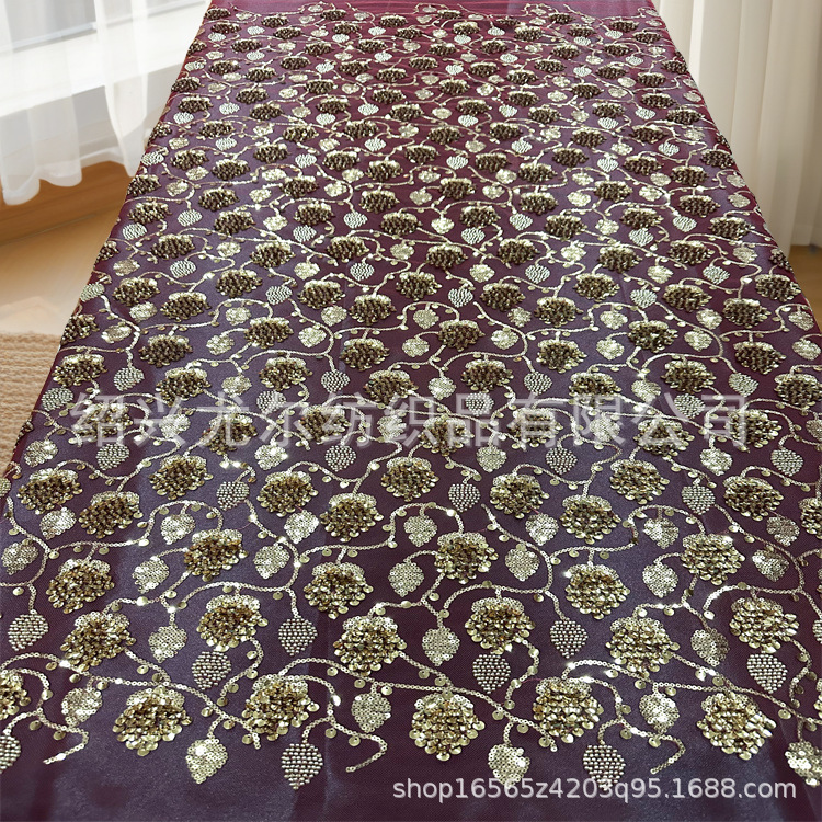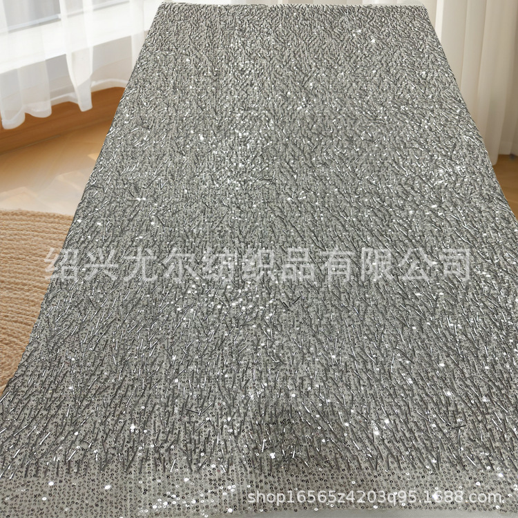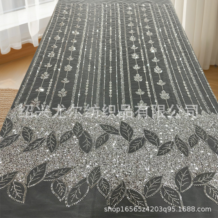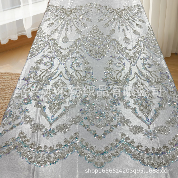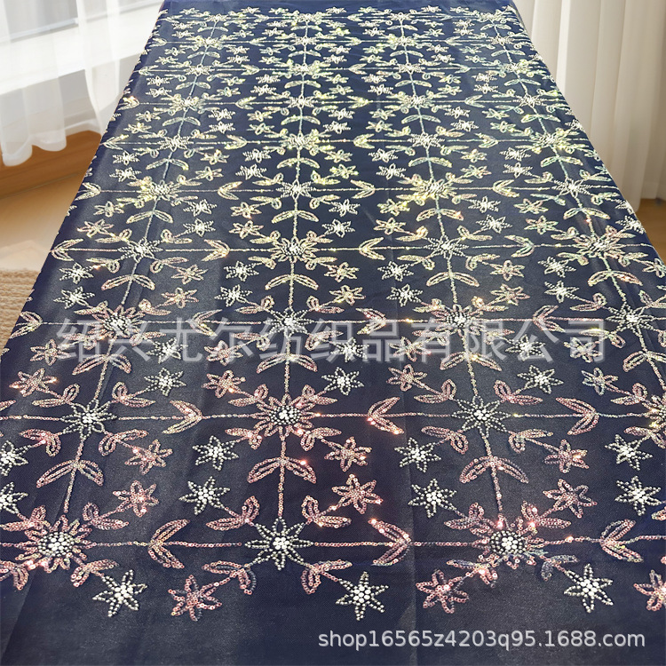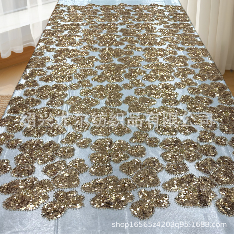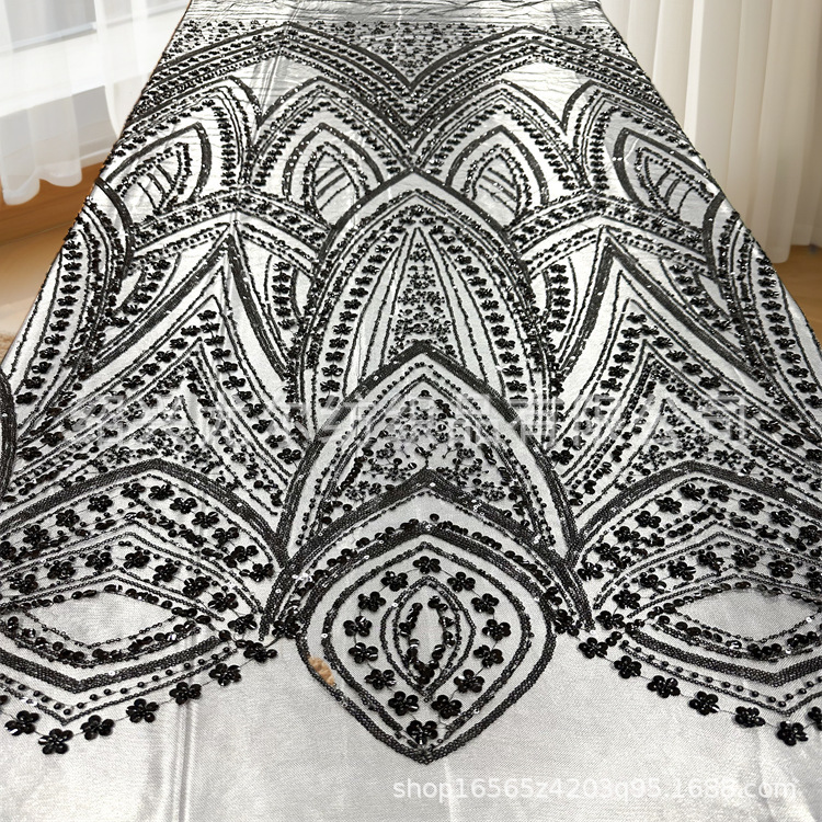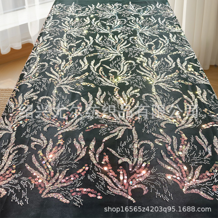 2025新型開発大花位ファッションドレス金光珠片スパンコールビーズ刺繍生地量量大特恵