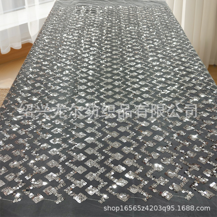 ポリエステル韓網幾何形菱形格子四角黒シャンパン色白銀珠管刺繍女装ファッション家紡織抱枕