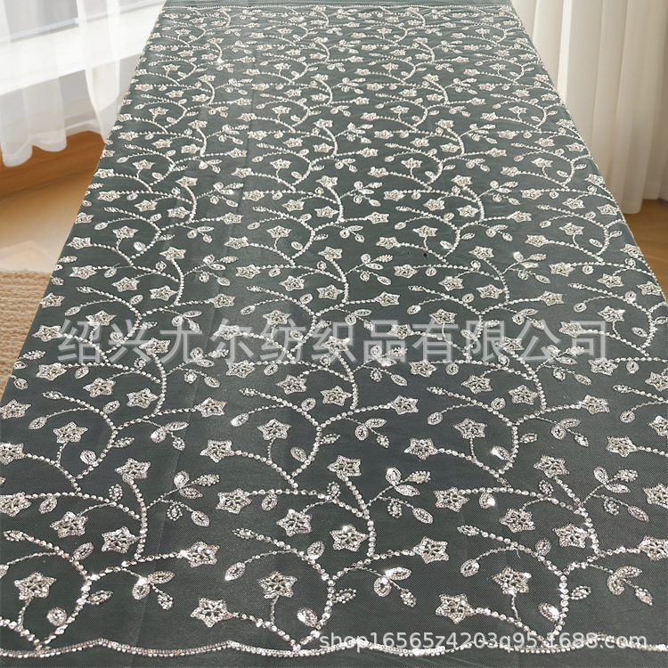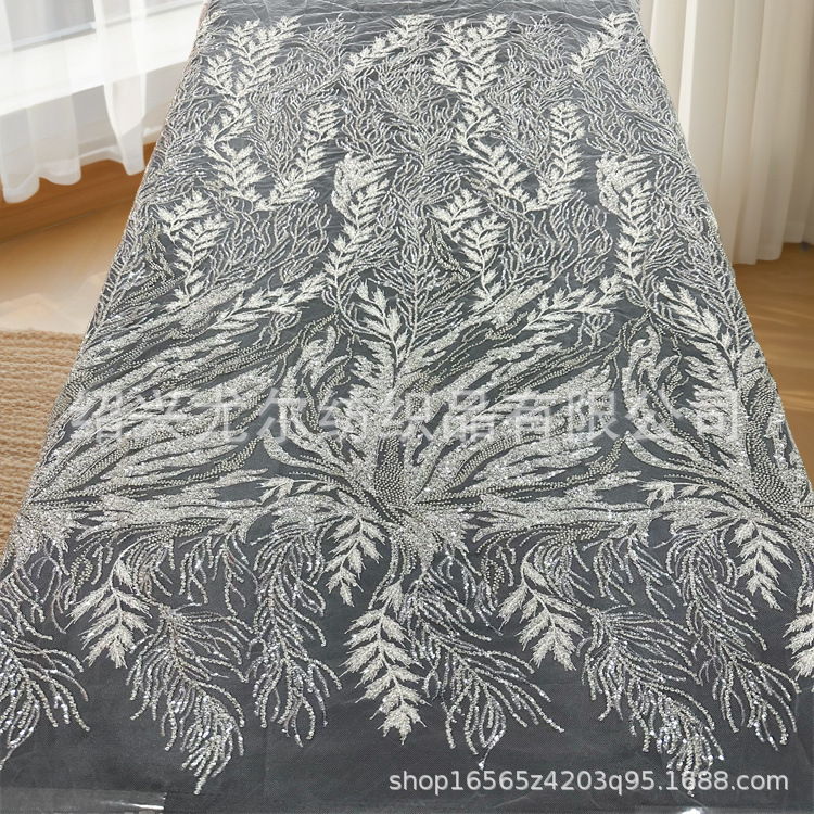 2025新型連枝花満幅白銀米管水晶スパンコールセット珠管刺繍ファッションドレス対外貿易金