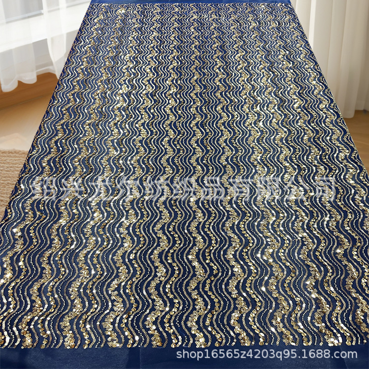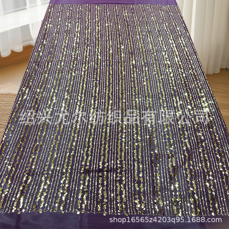 網布底縦条珠管刺繍3 + 7ミリ金色片単珠金色刺繍生地