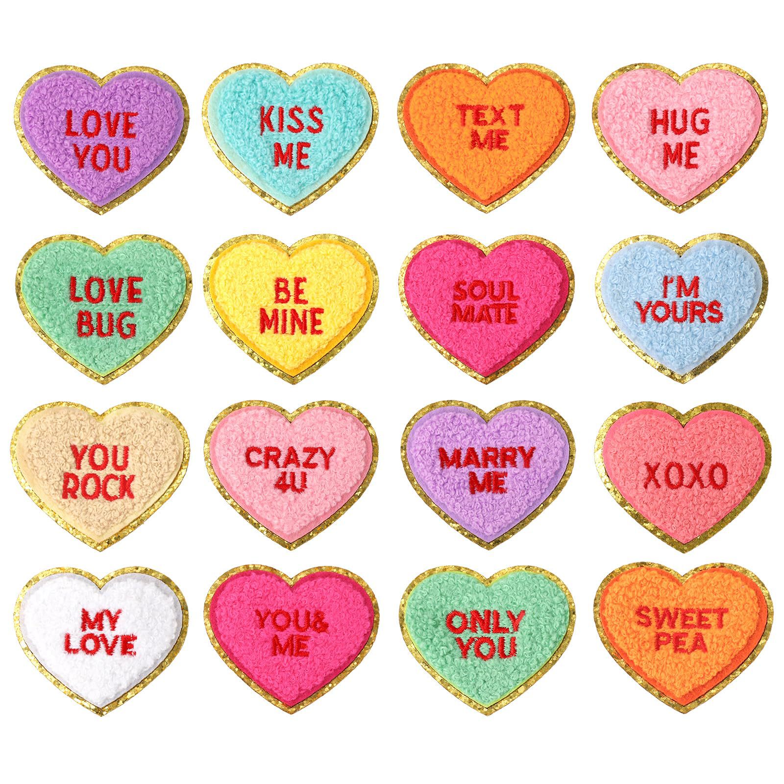 アマゾンのバレンタインデーのタオルの刺繍は金の辺のハート型の陳列のシールのカラーの刺繍の熱転写の印刷剤のDIYを貼ります。