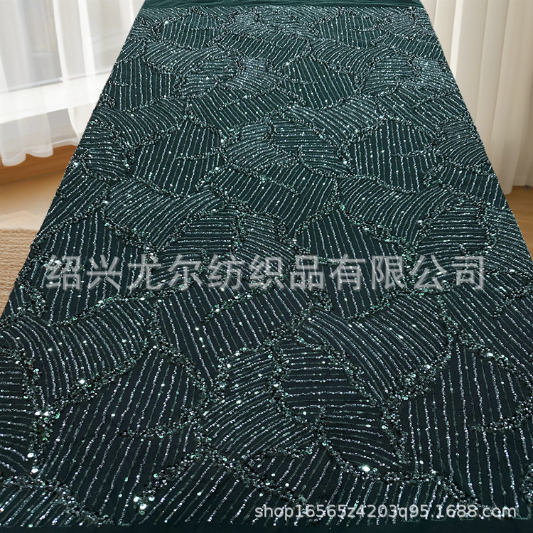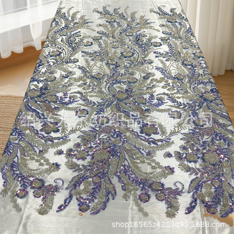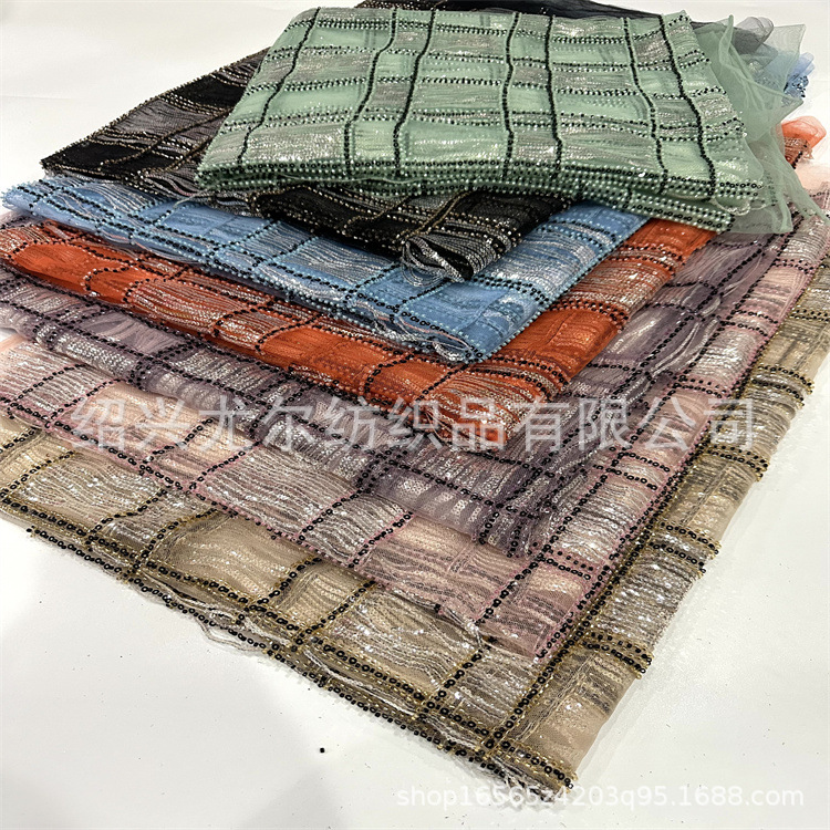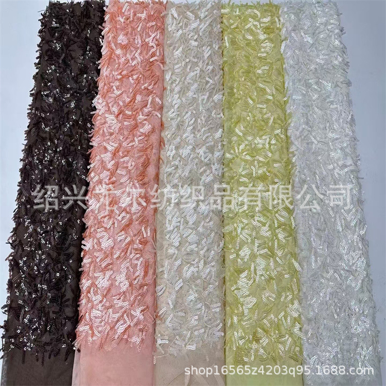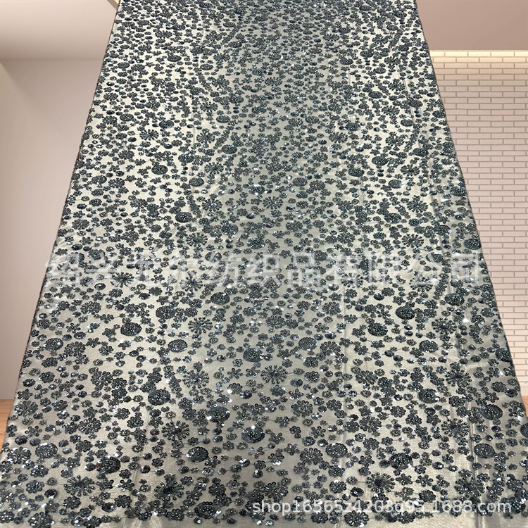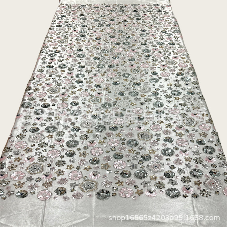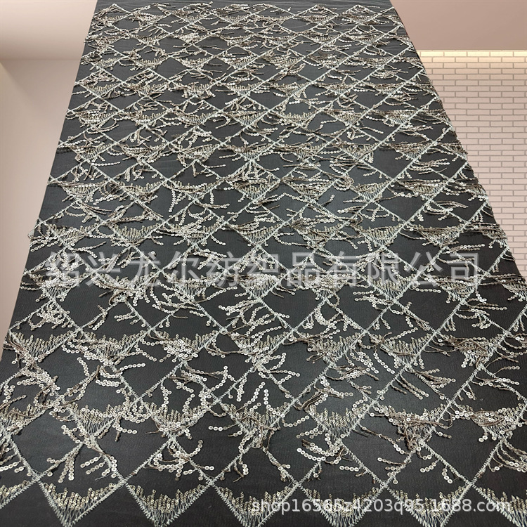 メッシュビーズ縦条刺繍幾何学花型水晶透明片ガラスビーズ組み合わせ刺繍生地