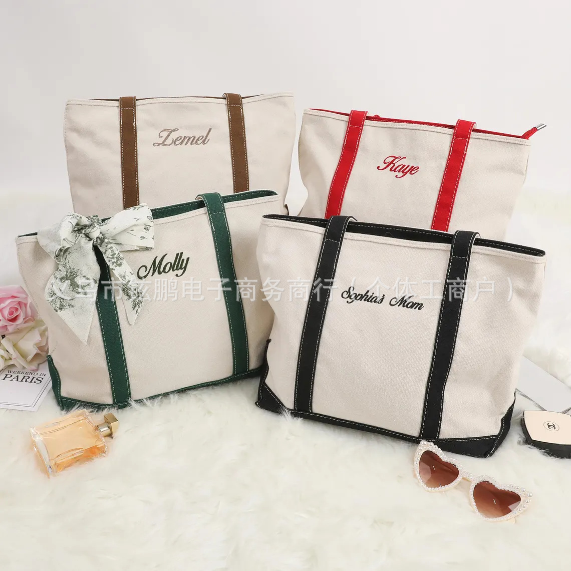 クロスボーダーカスタム刺繍ロゴキャンバスハンドバッグキャンバスバッグ学生レディースバッグトートバッグ刺繍カスタマイズ