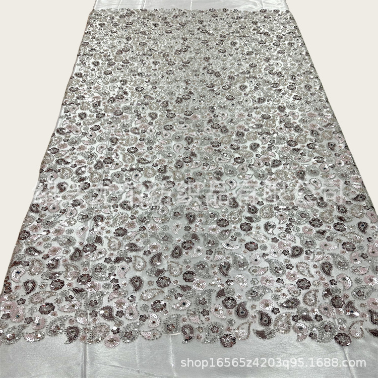 新型ミミズ乱花ネット布底5ミリ水晶片透明粟珠刺繍生地