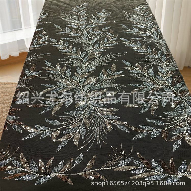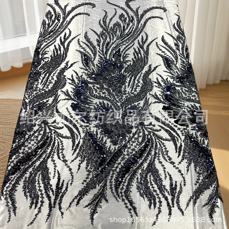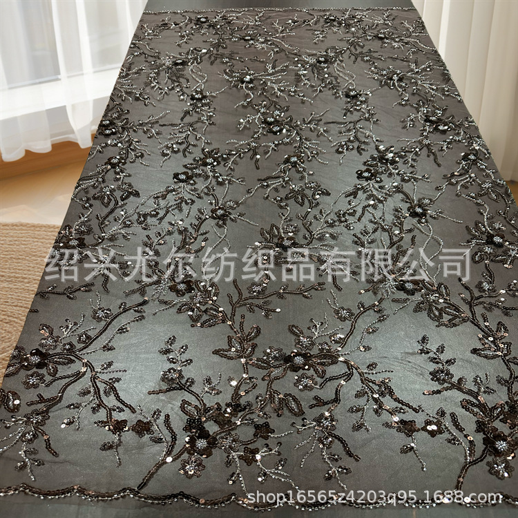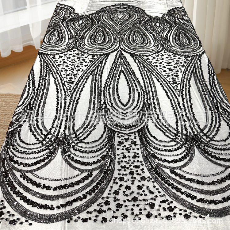 2025新型大花位タキシードの玉管は7ミリのスパンコールの黒い玉の黒い泡の刺繍の生地を刺繍します。