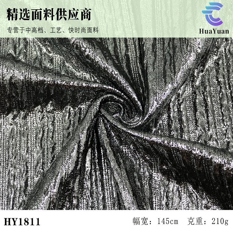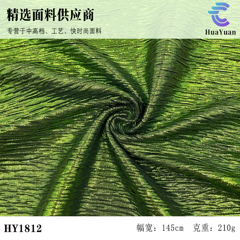色丁シワ満版箔押しポリエステル光沢ニット生地背景装飾布演出服装スカート