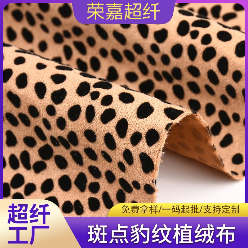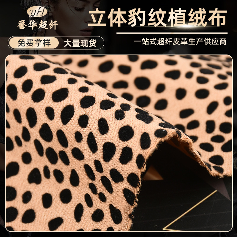 工場直接供給三次元印刷スポットヒョウ柄スエードマイクロファイバー植毛布