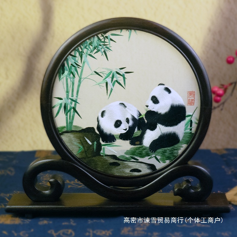 蜀刺繍の手刺繍の両面刺繍のパンダの置物の中国風の贈り物は外国の四川省の成都の特色のお土産を送ります。