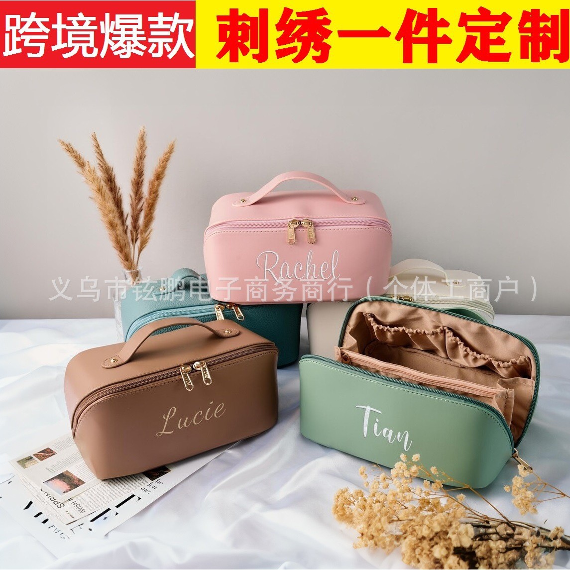 Etsyカスタム刺繍入りパーソナライズPU化粧ポーチ、旅行用大容量レザー洗面用具収納バッグ、刺繍カスタム