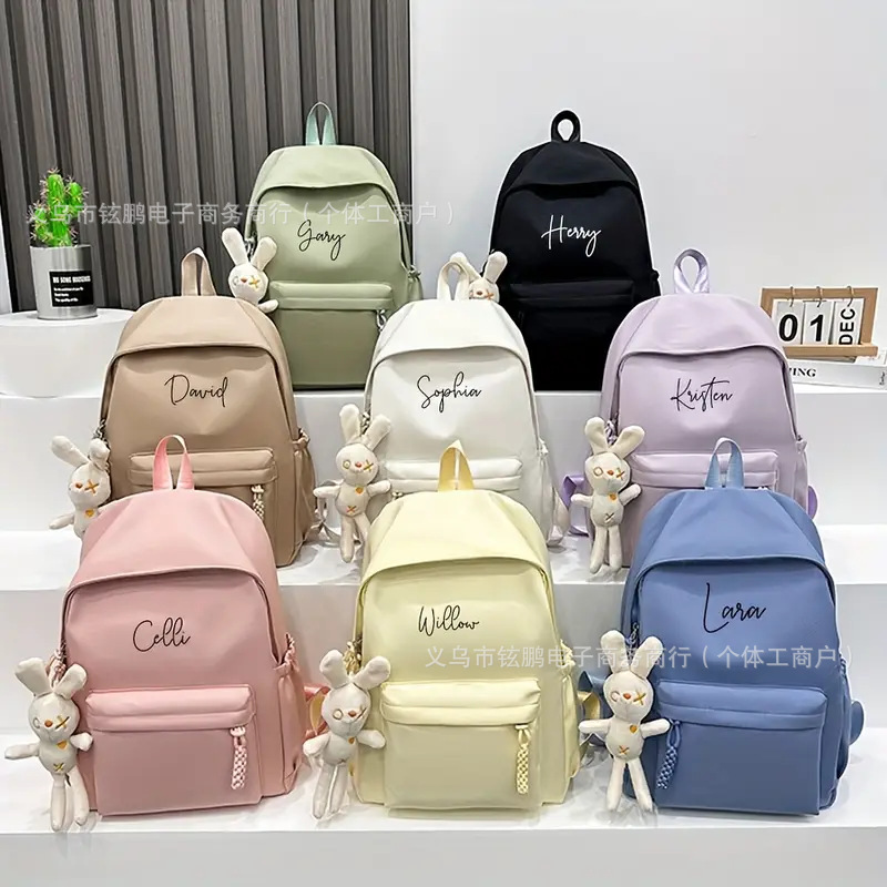 クロスボーダーポッドパーソナライズされた刺繍カスタムロゴレディースバックパック学生シンプルなバックパック大容量トラベルバッグ