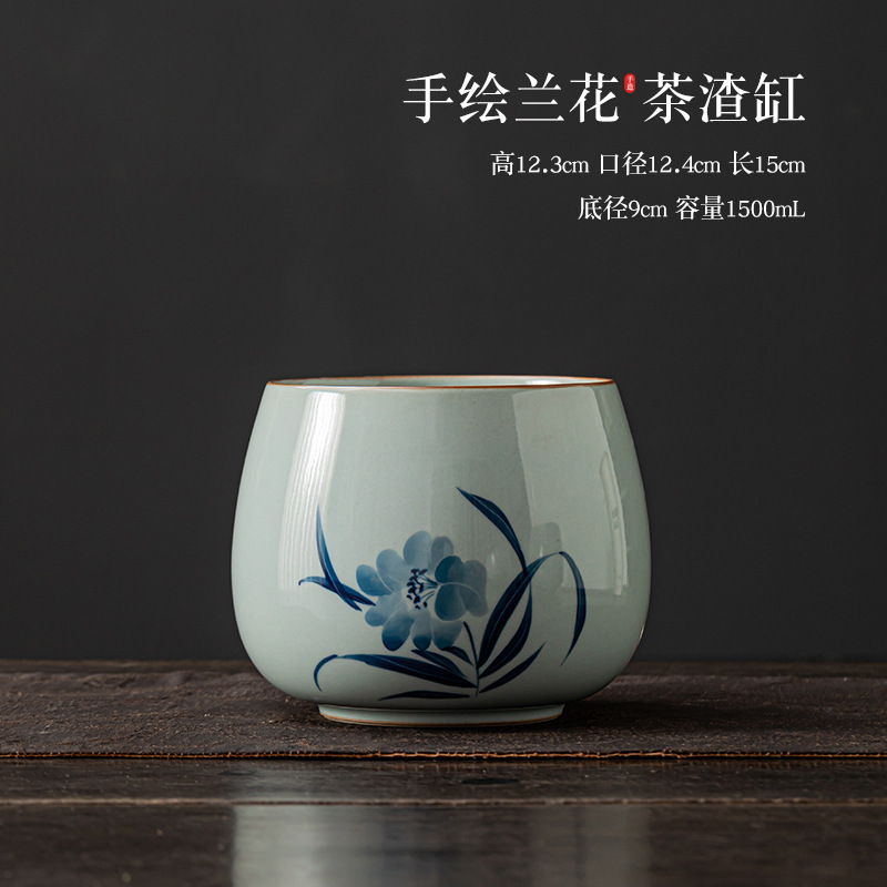 陶磁器の汝窯の茶筒の大きいサイズの建水の茶かすの廃茶のバケツは蓋のかめの蓬蓮の家庭用のお茶を持って茶道の部品を洗います。