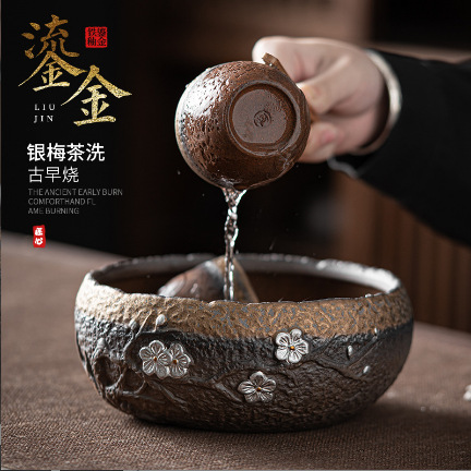 茶洗い 和風鉄釉粗陶銀梅茶洗い 大茶洗い 水カップ洗い カンフー茶器 茶道アクセサリー 茶洗い