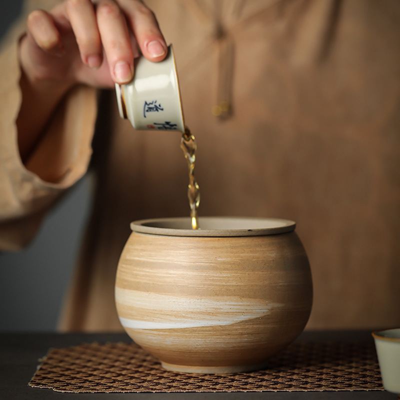 粗い陶器のお茶のかすのかめの家庭用陶磁器の蓋付き建水のお茶のお盆の水のお盆の日本式の復古的な水洗いの筆洗いは壺の承を養います。