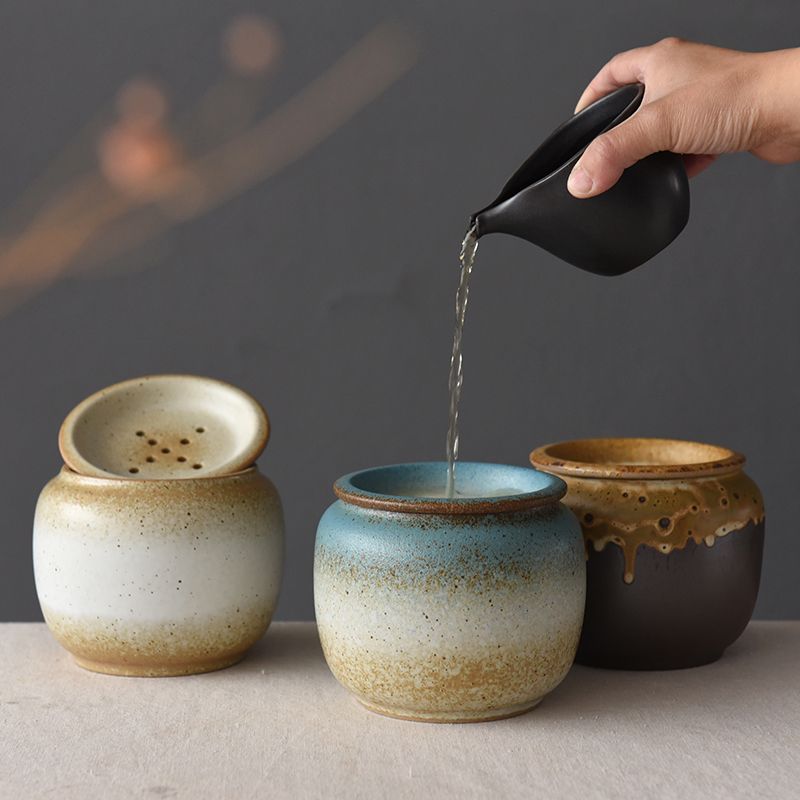 日本のレトロな茶こし、蓋付き茶こしセラミック、大型建水茶こし、卓上フィルター茶こし、茶器スペアパーツ