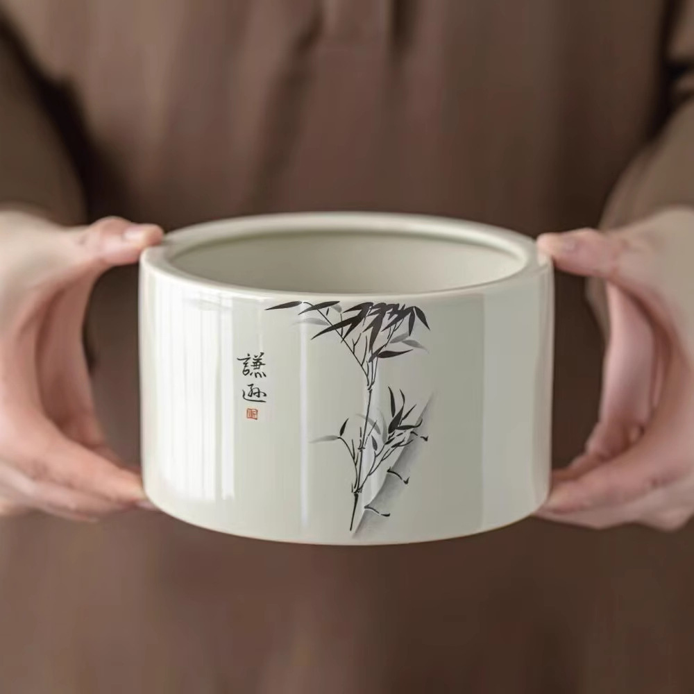 草木灰墨竹茶洗陶磁器家庭用水盆書斎筆洗杯盆茶かすかめ工夫茶器茶道零配
