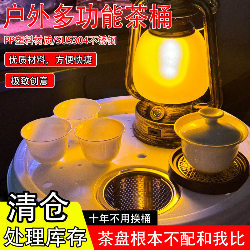 インターネット有名人の屋外モバイル厚みのあるプラスチック製ティーバケツ、ポータブルトラベルバケツの完全なセット、キャンプ用モバイルティーバケツツーインワンなし
