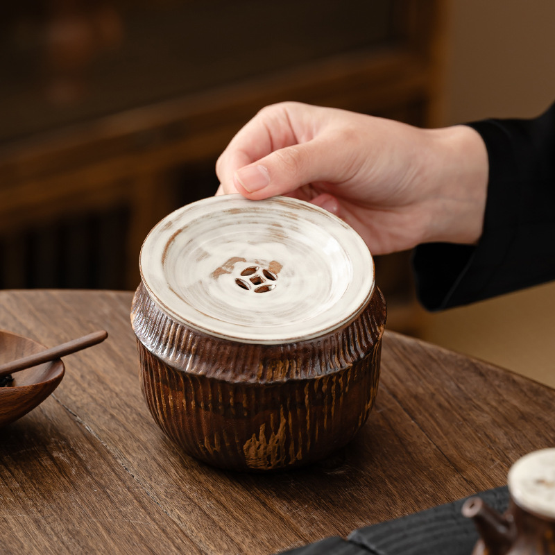 寂建水粉引日本式蓋付き洗水家庭用レトロ粗陶茶盆茶洗茶滓筒斗茶道零配