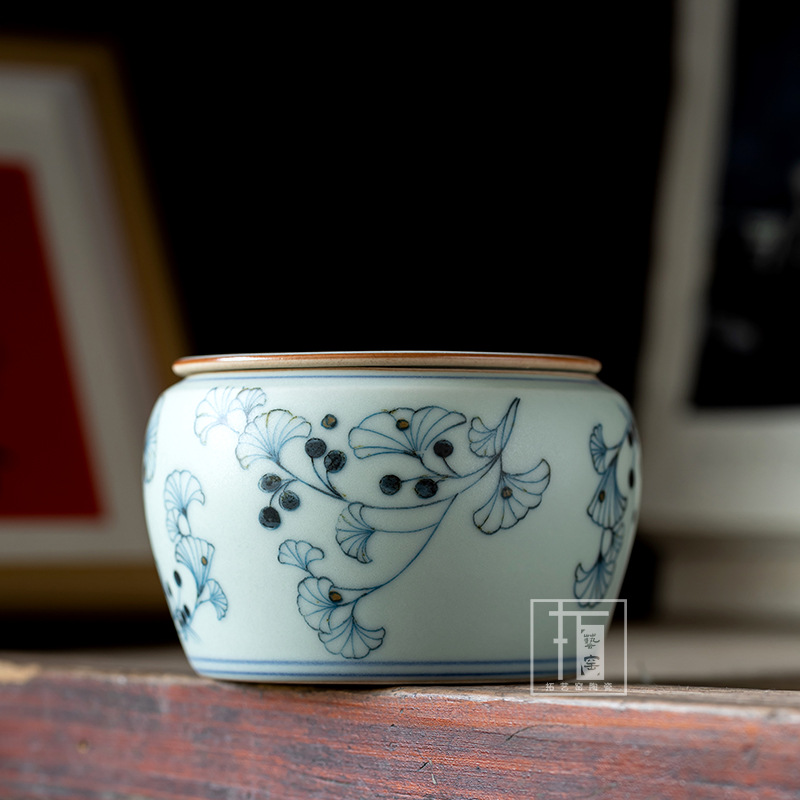汝窯茶粕タンク茶道廃水バケツ家庭用セラミックティーテーブルリビングルーム灰皿防塵蓋付きティーセットアクセサリー