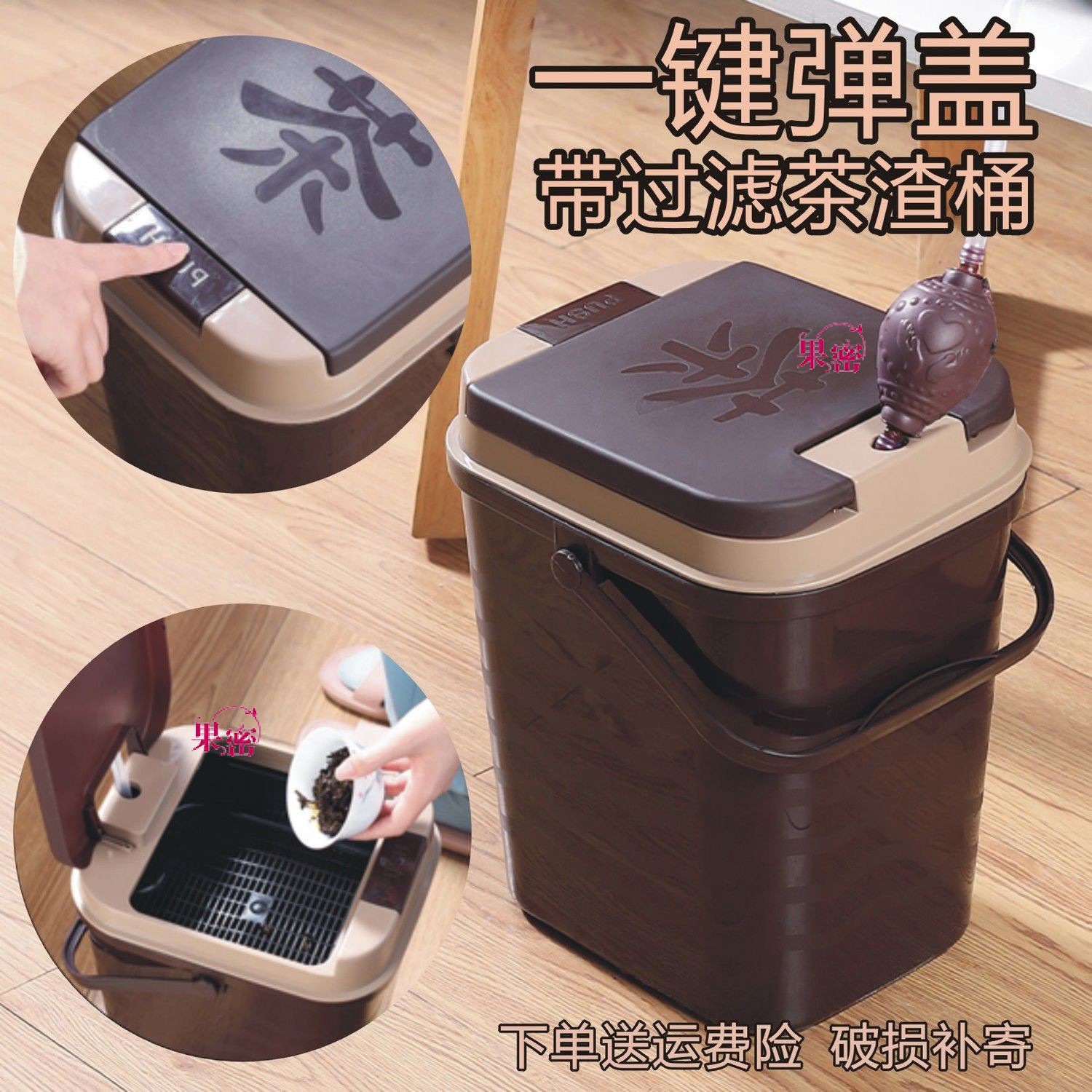 家庭用大容量茶バケツ角型茶滓ろ過茶桶茶盤廃水排水桶茶葉ゴミ箱