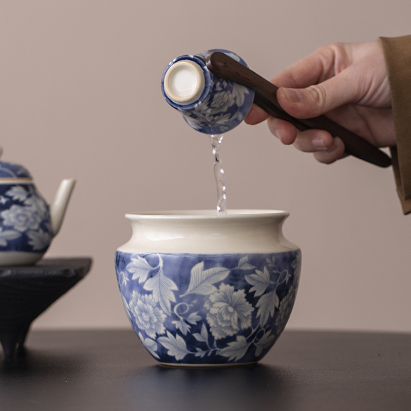 ソーダ釉薬レトロ青花建水茶かすかめ陶磁器工夫茶道具廃水かめ筆洗茶道零配
