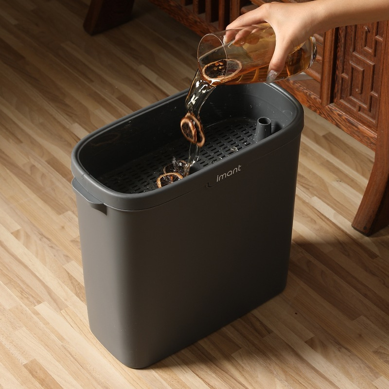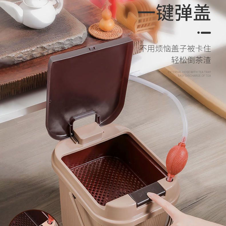 家庭用四角い茶バケツ廃バケツ乾湿分離オフィスリビング茶台プッシュプルカバー大容量茶かすバケツ