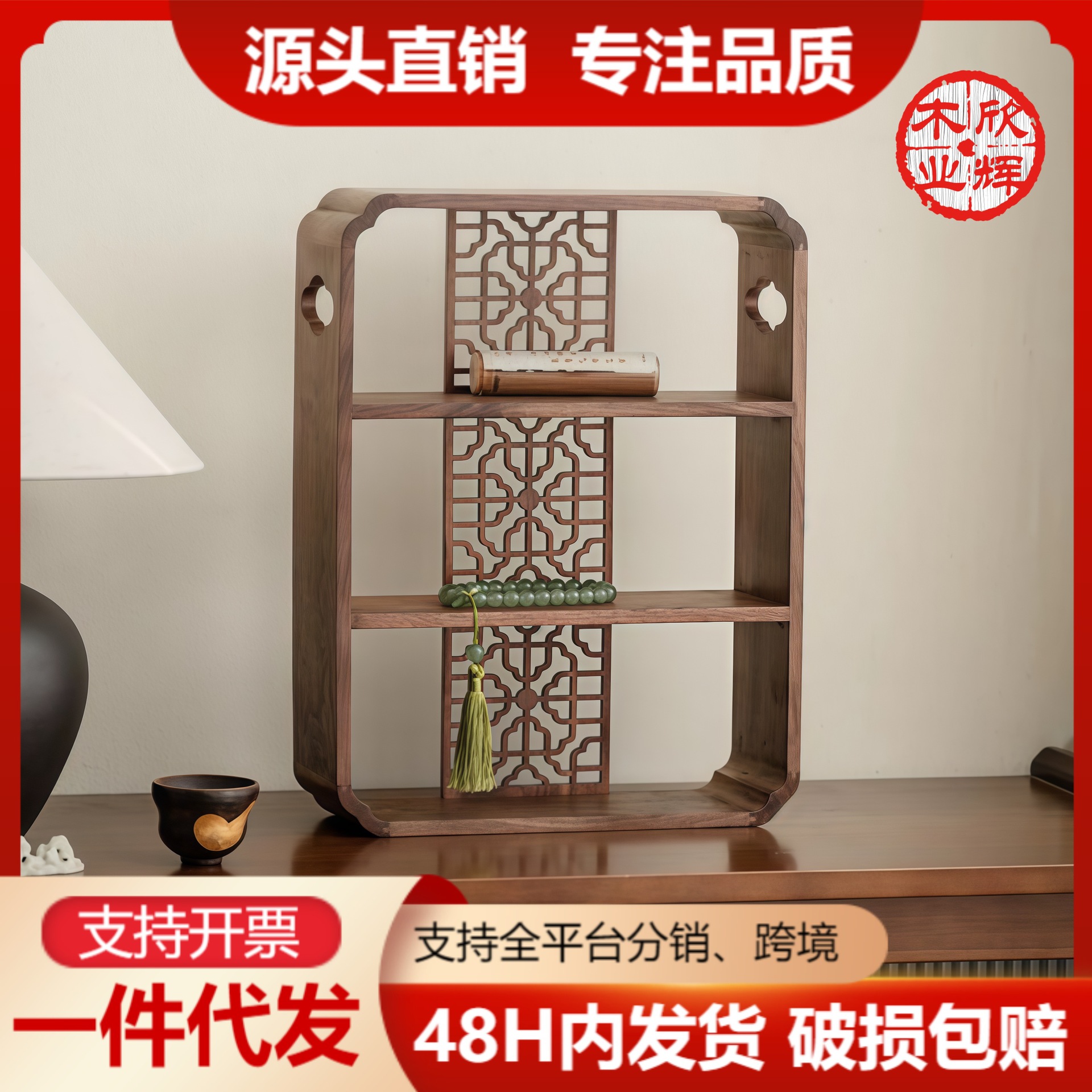 新中式博古架卓上黒胡桃専用茶器収納棚無垢材茶杯棚茶台置物棚茶壺