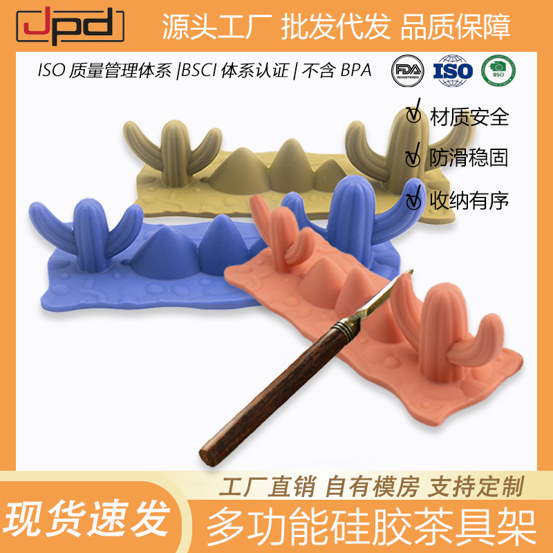 新しいシリコンティーセット収納ラックデスクトップ収納ソフト落下防止と耐熱ティーテーブル装飾品シリコン収納
