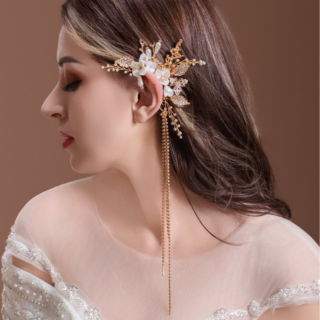 花嫁の韓国式陶磁器の耳掛けの頭飾りの超仙の甘い側の耳飾りの結婚の紗のタキシードと化粧の結婚の飾り