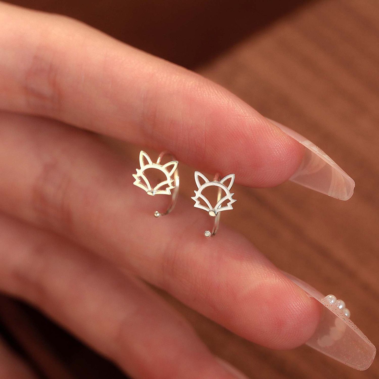 抗アレルギーins透かし彫り狐耳フック女性大衆デザインシンプルな耳穴睡眠無料イヤリング耳骨釘