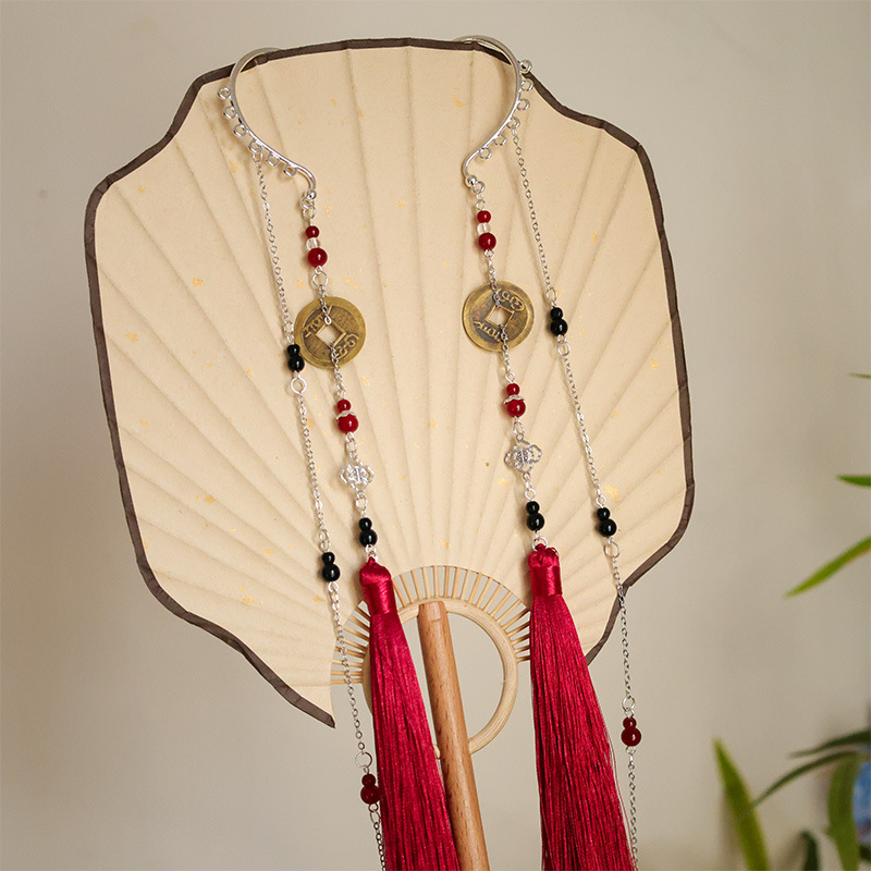 古風漢服銅銭耳掛けイヤリング