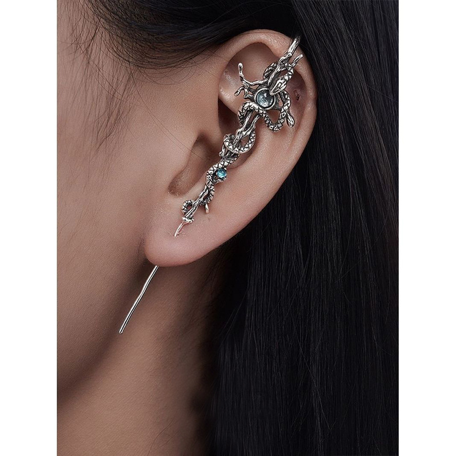ヨーロッパとアメリカのレトロな古いダイヤモンドがちりばめられたヘビのイヤリング、ヘビ巻き耳掛けピアス、パーソナライズされたダークスタイルのイヤリング