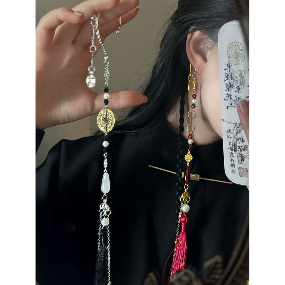 漢服アクセサリー春夏cos穂子チャイナドレス花嫁アクセサリー中国式耳掛け流蘇超仙竹韻イヤリング