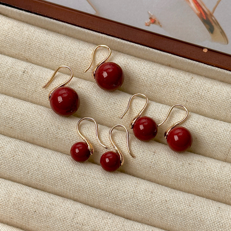 レトロな赤いイヤリング、軽やかな高級感、ニッチな耳掛けデザイン、シンプルで高級なイヤリング、秋冬の新作、お祝いのイヤーフック